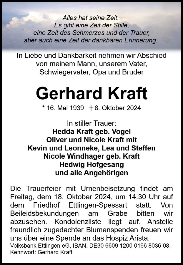 wir wünschen Ihnen für die kommende Zeit viel Kraft und dass es Ihnen gelingt, dankbar auf die positiven Erinnerungen zurückzublicken. Diese Gedenkseite möge Ihnen dabei helfen, Ihre Trauer zu teilen und das Andenken gemeinsam wachzuhalten.