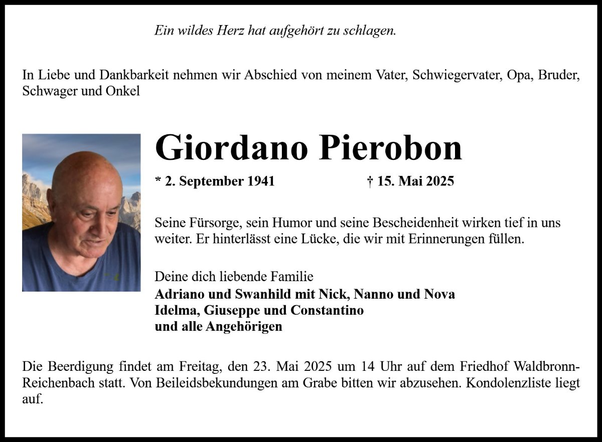 in dieser Zeit des Schmerzes wünschen wir Ihnen Kraft, den Verlust im Kreise Ihrer Liebsten zu verarbeiten. Als Zeichen unserer Anteilnahme und des Gedenkens entzünden wir dieses erste Licht. Möge diese Gedenkseite Ihnen helfen, Erinnerungen zu teilen und so das Andenken gemeinsam wachzuhalten.