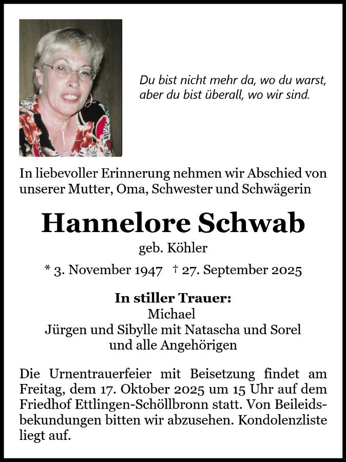Trauerfeier mit Urnenbeisetzung, Schöllbronn Friedhof
