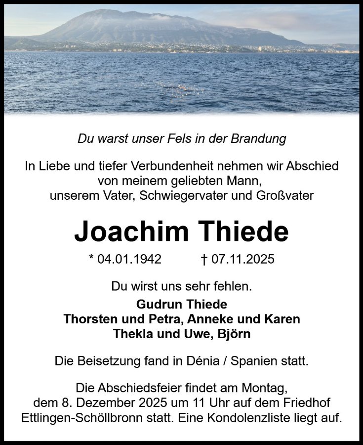 wir wünschen Ihnen für die kommende Zeit viel Kraft und dass es Ihnen gelingt, dankbar auf die positiven Erinnerungen zurückzublicken. Diese Gedenkseite möge Ihnen dabei helfen, Ihre Trauer zu teilen und das Andenken gemeinsam wachzuhalten.