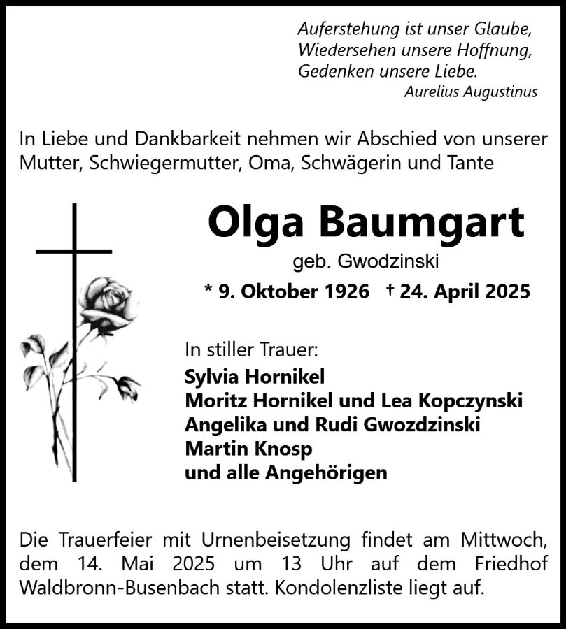 Olga Baumgartgestorben am 24. April 2025